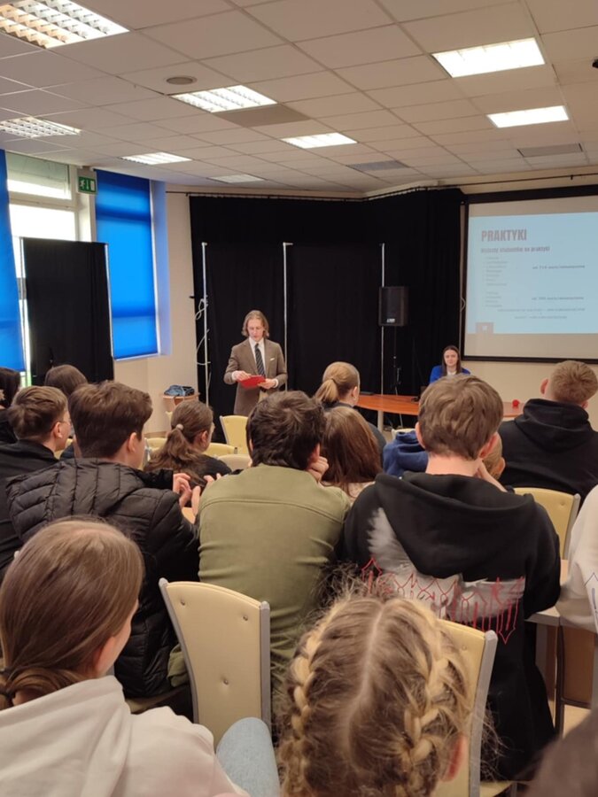 Podczas spotkania uczniowie zapoznali się z naszą ofertą edukacyjną oraz specjalnościami dostępnymi na naszej uczelni. Mieli także okazję wysłuchać inspirującego wykładu "Za kulisami hotelu – poznaj naszą pracę i możliwości", który poprowadziły Jolanta Ołdakowska, Dyrektor Hotelu DeSilva Premium Poznań, oraz Aleksandra Wesołowska, Specjalista ds. Sprzedaży Hotelu DeSilva Premium Poznań.